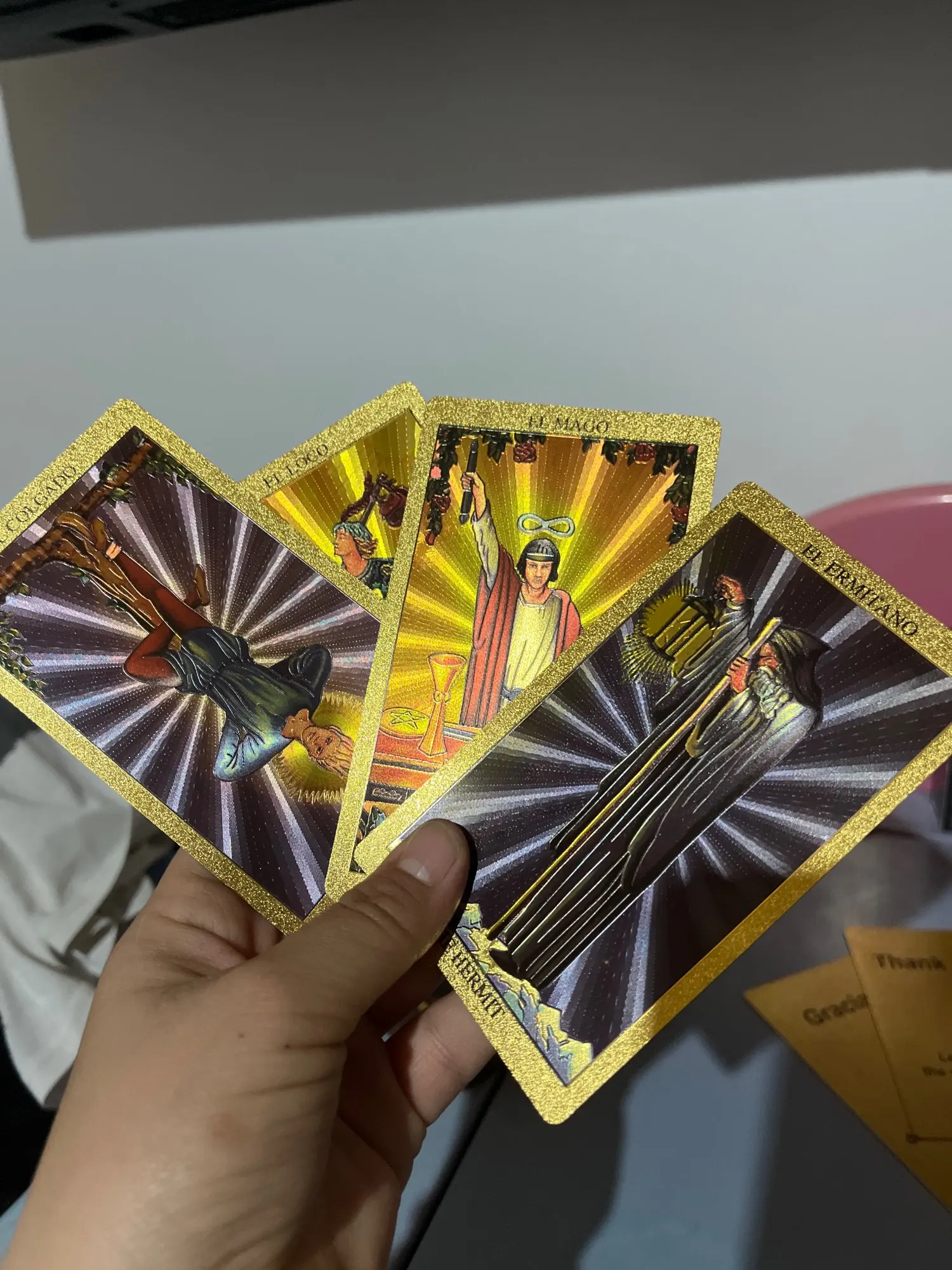 Golden Foil Tarot Deck Prophecy Cards for Beginners (SPA + ENG)