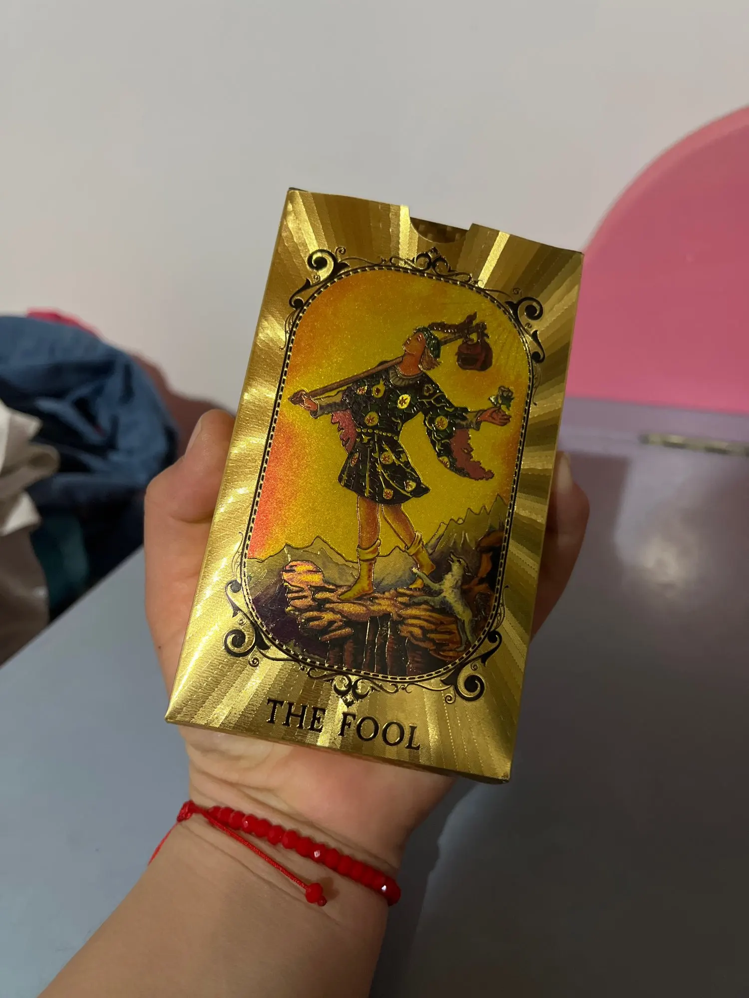 Unleash the mystic within with our Golden Foil Tarot Deck Prophecy Cards for Beginners. This luxurious deck features stunning golden foil accents and comes with a bilingual guidebook in Spanish and English. Experience the power of divination and discover your destiny with these exquisite 12x7cm Toro Taro cards.